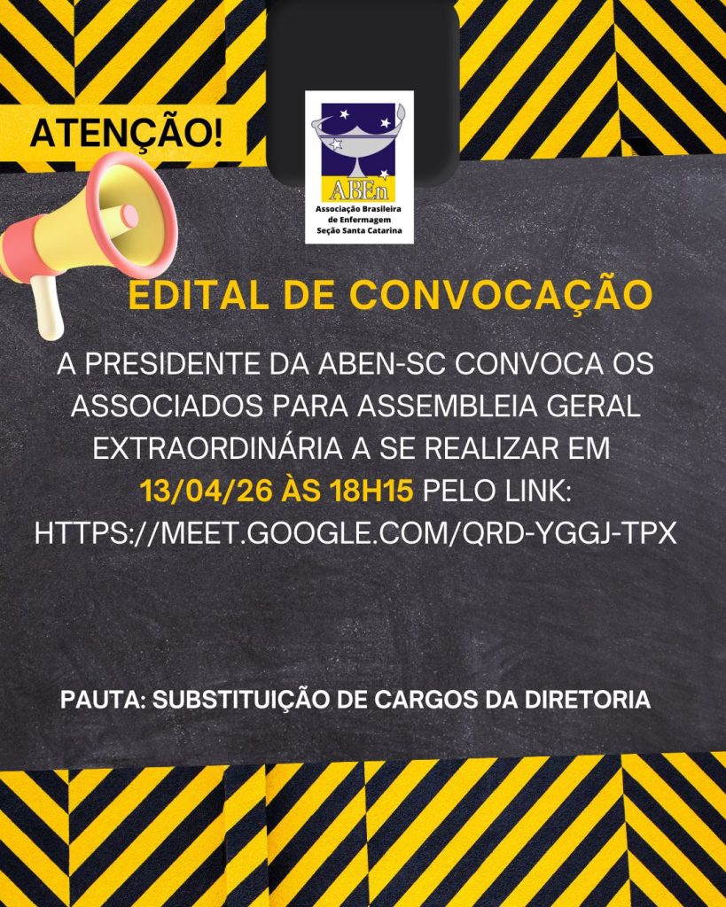 A Presidente da ABEn-SC convoca os membros associados da ABEn-SC para AGS Ordinária.